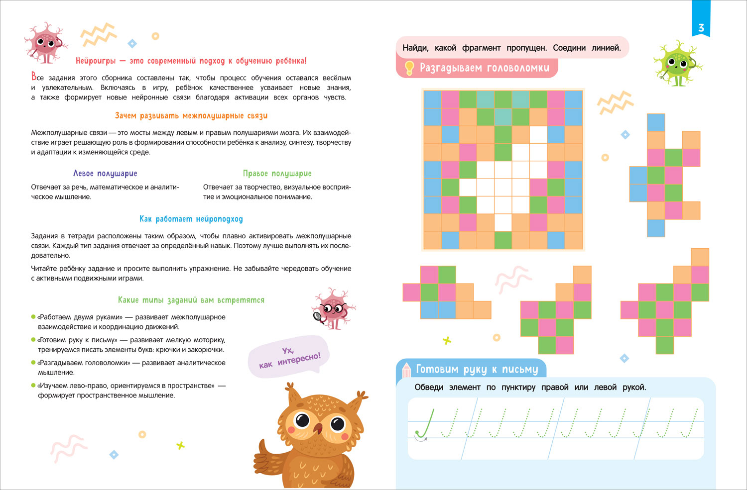 В этом пособии собраны нейроупражнения для детей 6 лет. С их помощью ребенок в легкой игровой форме подготовит руку к письму. А современная эффективная нейрометодика поможет ему развить абстрактное мышление, активируя межполушарные связи.